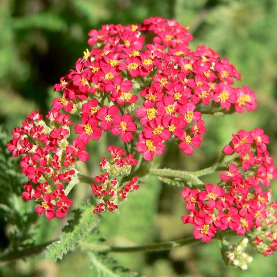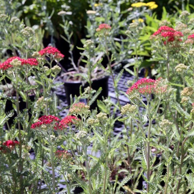 Paprika Yarrow is a vibrant perennial plant with delicate, aromatic fern-like foliage. Its flat clusters of striking red flowers with yellow centers bloom in summer., which makes for an excellent cut flower that retains color when dried. Prefers full sun and well-drained soils. Easy care and drought-tolerant once established, and resistant to most common pests and diseases.
